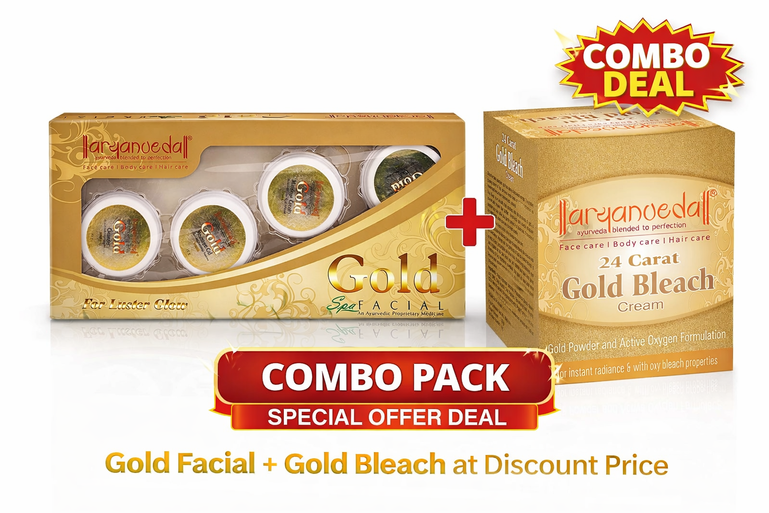 Aryanveda Gold Facial Kit + 24 Carat Gold Bleach Combo Pack